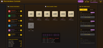 Roll legendary polyhedral dice—from the humble d4 to the mighty d100—to earn gold and experience. Each die you own rolls when you click, multiplying your rewards. Build your collection, hire adventurer minions to roll for you automatically, and watch your treasure hoard grow!